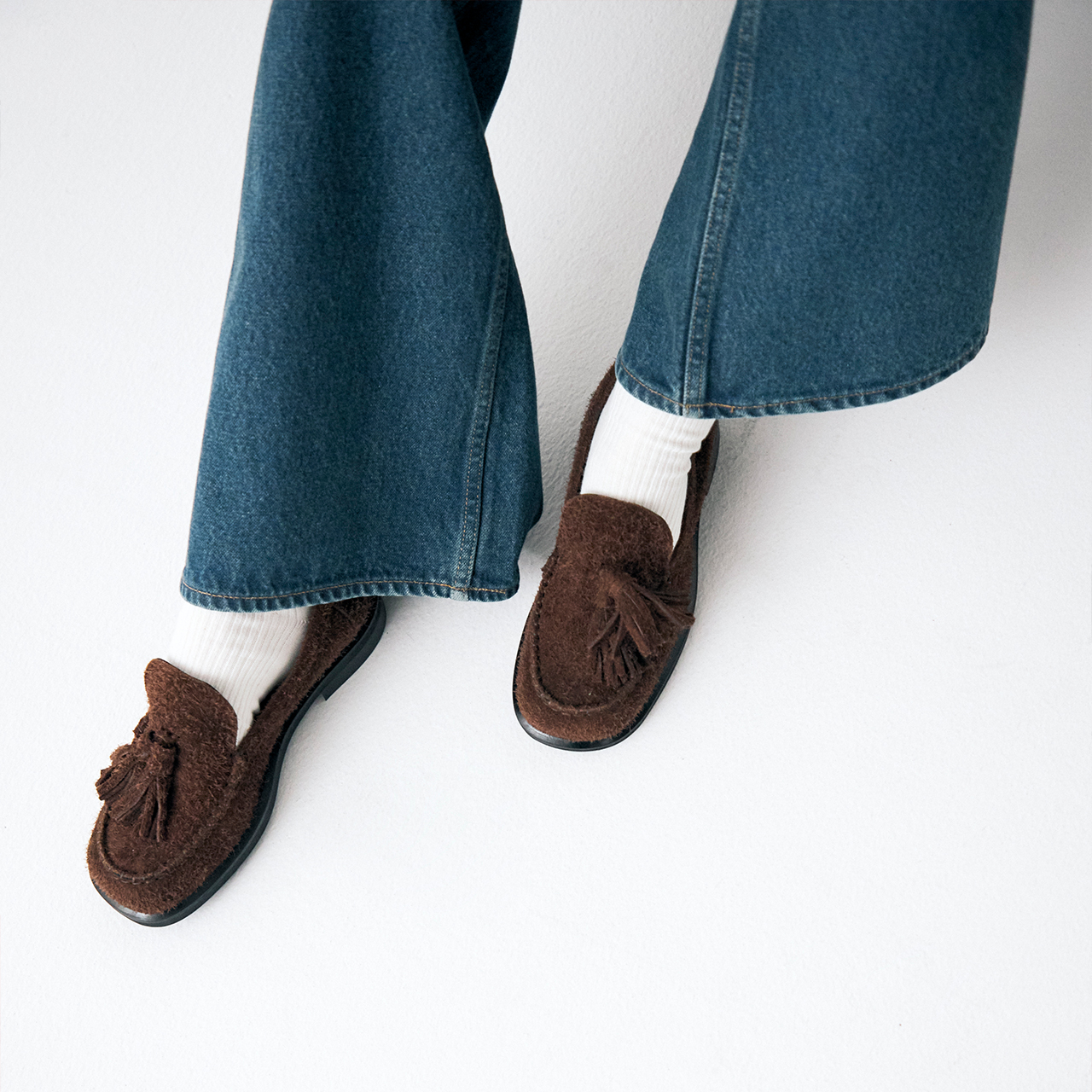 SCROFA25AWで初登場となる新木型“SCROFA”を使用したローファー2型が登場。 モード感のあるワイドスクエアトゥに、2.5cmのボリュームソールでスタイルアップも実現。 プレーンタイプは艶やかな漆黒のガラスレザーが際立つ洗練された一足。 タッセルタイプは起毛感のあるスウェードを採用し、大人の足元に程よい抜け感をプラス。シンプルでいて芯のある、ワードローブに欠かせない一足です。
